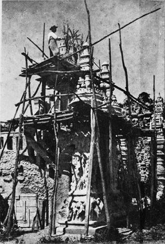 A partir de ce moment-là, chaque jour durant sa tournée, Ferdinand Cheval mit des pierres en tas, et revint les chercher le soir. Il commença alors la construction de son magnifique monument orné de voûtes, de tourelles et de colonnes richement sculptées, qu’il poursuivit soir après soir, pendant des années.